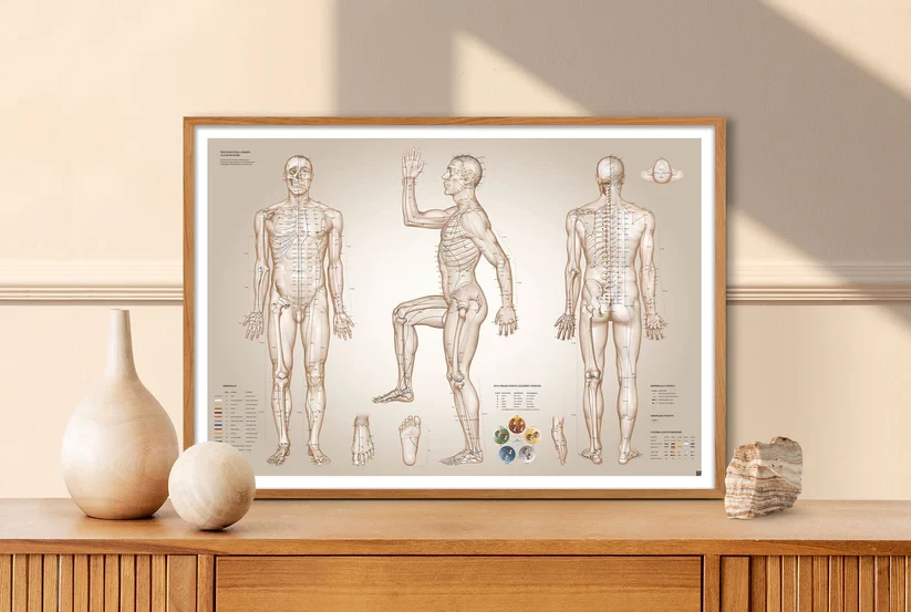 Veja também a versão clínica com 3 pôsteres de 61x91 cm, que é grande e impressionante - https://www.swehealth.se/anatomy-c-128/anatomyplanscher-c-129/affischer-for-behandling-c-258/akupunktur-plansch-the-essential-charts-af-acupuncture-p-3054